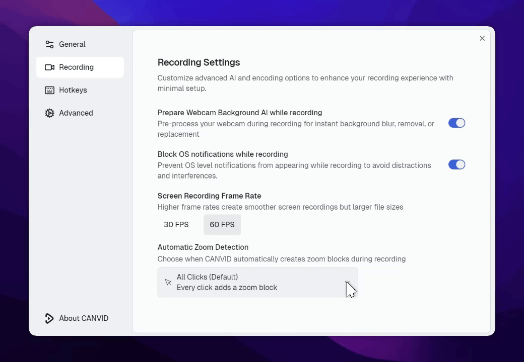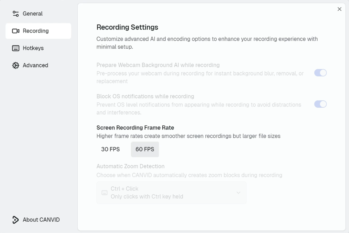 You can now choose your recording frame rate in Recording Settings. 30 FPS is the practical default for most tutorials because it balances clarity and file size. 60 FPS shines when motion is the message. If your audience needs to follow fine cursor movements or watch smooth UI transitions, try 60 for a session and see how it changes the feel of your video. If you are on a tight laptop or recording very long sessions, stay with 30 to keep your system cool and your project lighter.