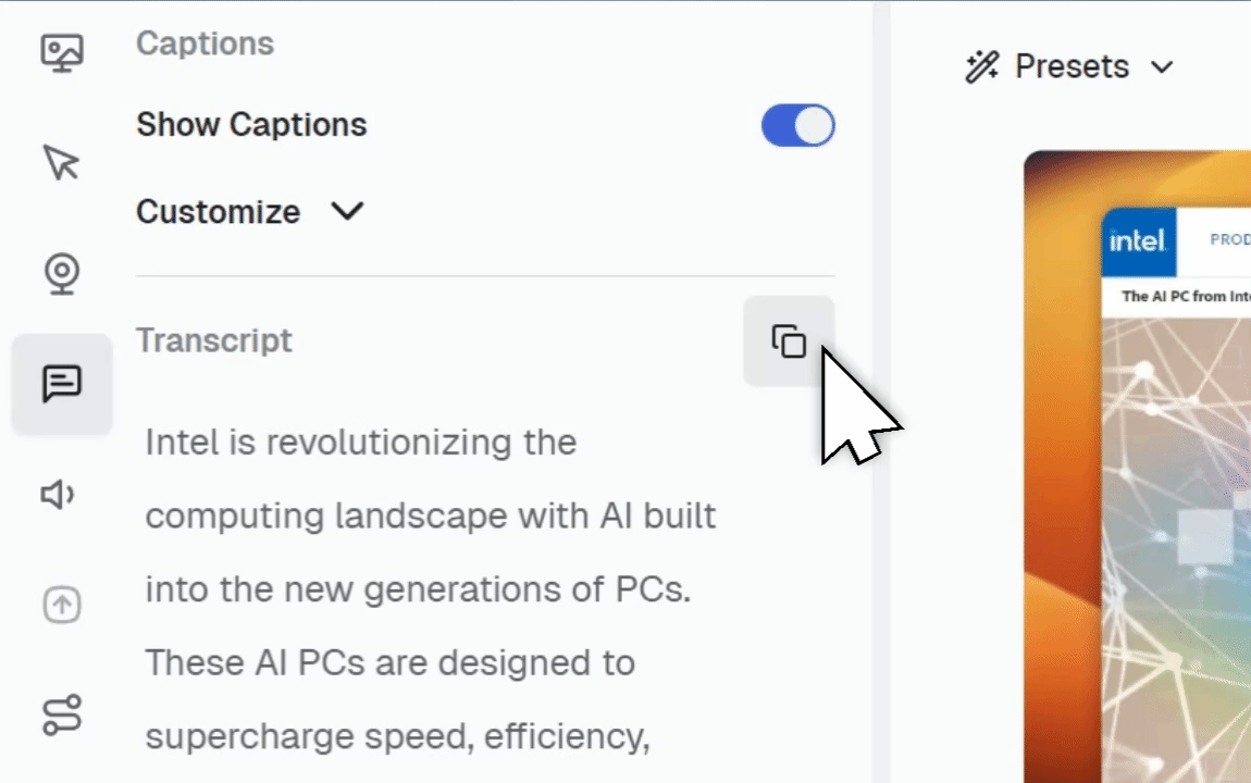 This is a favorite for teams that publish transcripts or captions. When you copy as Text or copy as SRT from the Transcript tab, the export now respects your timeline cuts. That means the words line up with the final video, not with the raw recording. If you share drafts for review or repurpose transcripts for docs, you will spend less time reconciling differences and more time shipping.