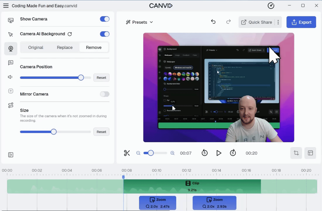 Want to create a short, shareable clip that plays automatically almost anywhere? With CANVID, you can export any project as a GIF, perfect for quick demos, reactions, or looping highlights.
