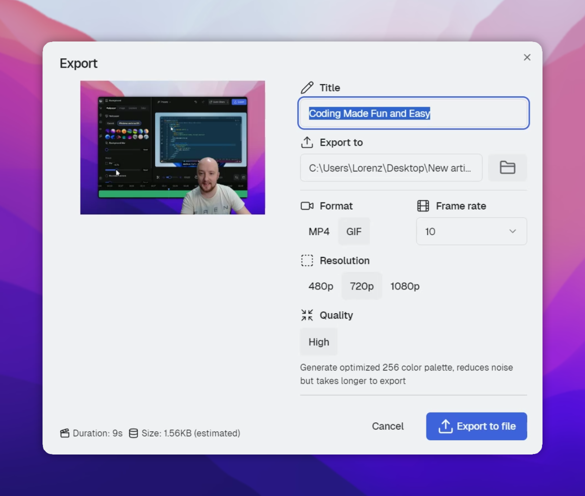 Once the export finishes, a confirmation message will appear, and your GIF is ready to share.